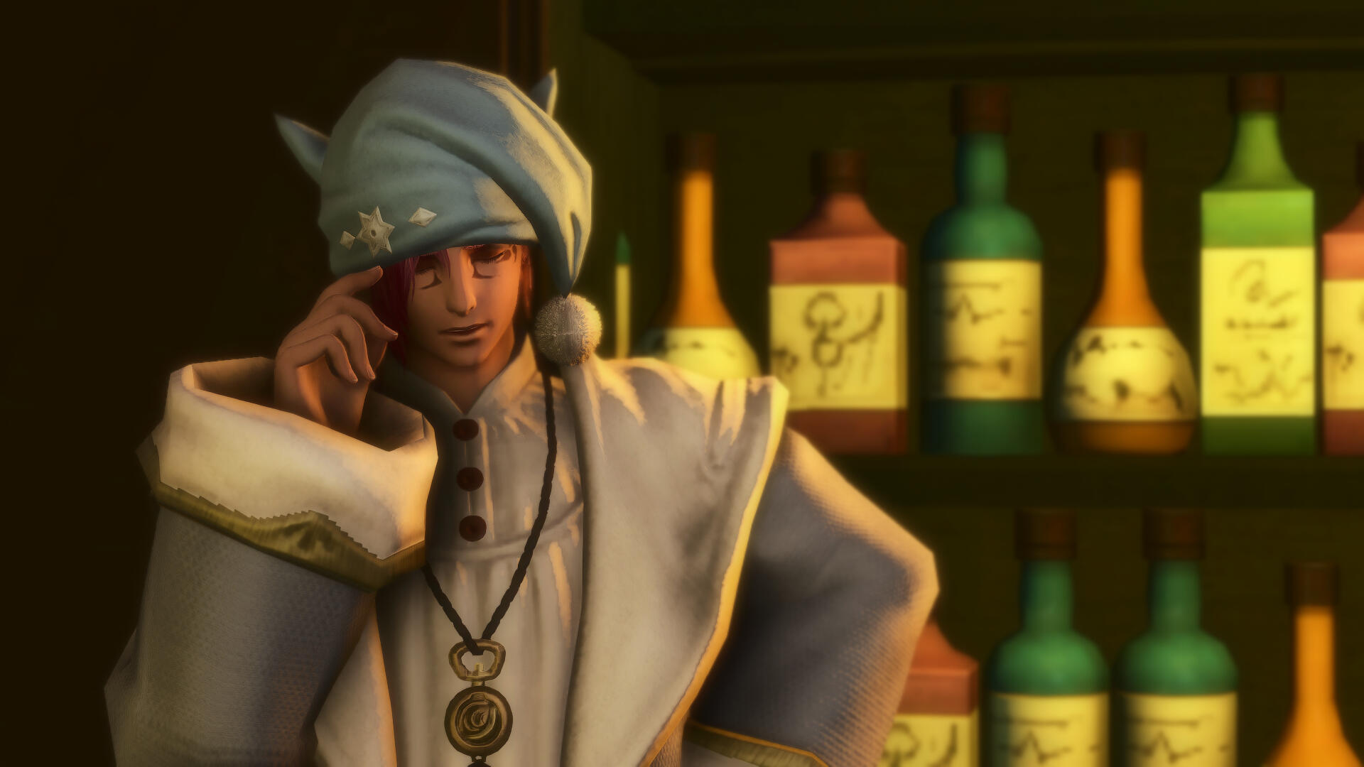 Bio: A quiet bartender who prefers to keep the peace within the club however he can; handling all the remedial tasks that no other wishes to do. While a striking conversation is one way to get the Au ra to speak, ordering a drink would be the only other.