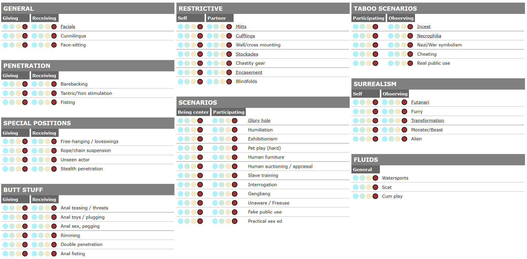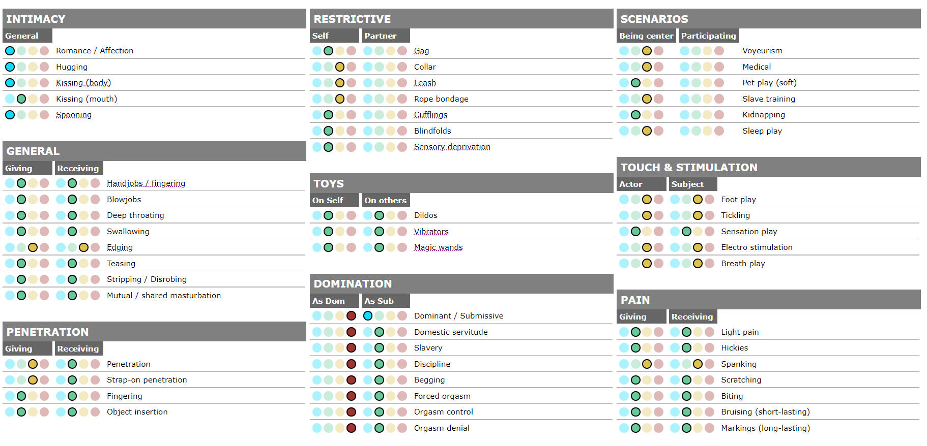 Dislikes: Ageplay, non-con (unless previously discussed), non-sexual bodily fluids (i.e. scat, urine, etc.)